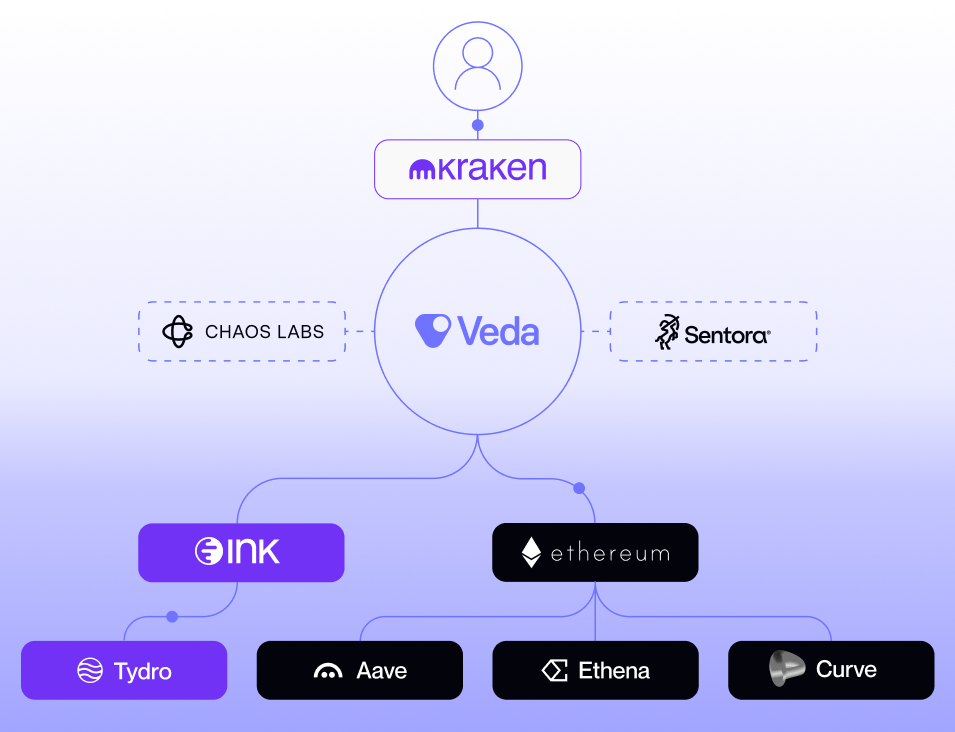 Kraken's new DeFi Earn product is an example of this. A Kraken Exchange user who may have never used DeFi directly before can deposit USDC and immediately start earning yield sourced from Aave, Morpho, Curve, and other protocols across multiple chains (in this case, across Ink and Ethereum).